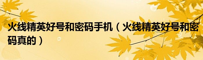 火线精英好号和密码手机(火线精英好号和密码真的)