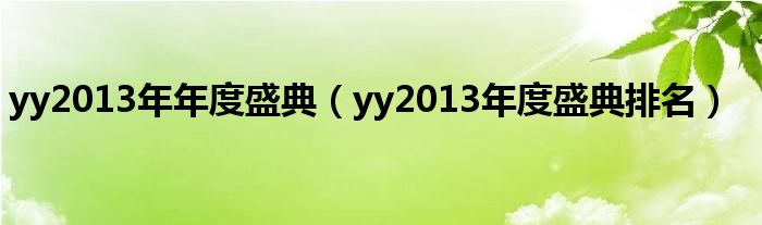 关于yy2013年年度盛典,yy2013年度盛典排名这个很多人还不知道,今天菲菲来为大家解答以上的问题,现在让我们一起来看看吧!