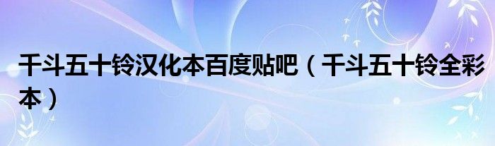 关于千斗五十铃汉化本百度贴吧,千斗五十铃全彩本这个很多人还不知道,今天菲菲来为大家解答以上的问题,现在让我们一起来看看吧!