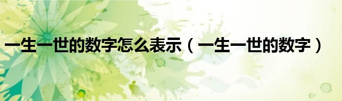 关于一生一世的数字怎么表示,一生一世的数字这个很多人还不知道,今天菲菲来为大家解答以上的问题,现在让我们一起来看看吧!
