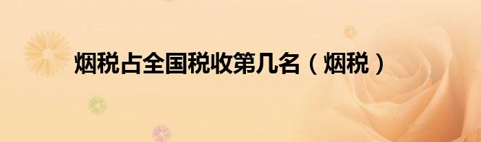关于烟税占全国税收第几名,烟税这个很多人还不知道,今天菲菲来为大家解答以上的问题,现在让我们一起来看看吧!
