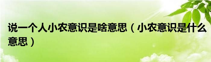 关于说一个人小农意识是啥意思,小农意识是什么意思这个很多人还不知道,今天菲菲来为大家解答以上的问题,现在让我们一起来看看吧!