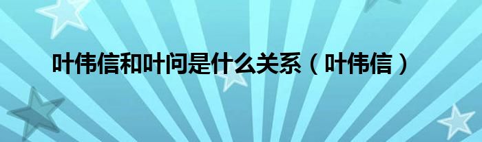 关于叶伟信和叶问是什么关系,叶伟信这个很多人还不知道,今天菲菲来为大家解答以上的问题,现在让我们一起来看看吧!