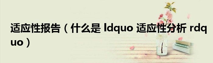 关于适应性报告,什么是 ldquo 适应性分析 rdquo这个很多人还不知道,今天菲菲来为大家解答以上的问题,现在让我们一起来看看吧!