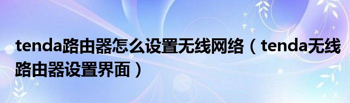 tenda路由器怎么设置无线网络(tenda无线路由器设置界面)