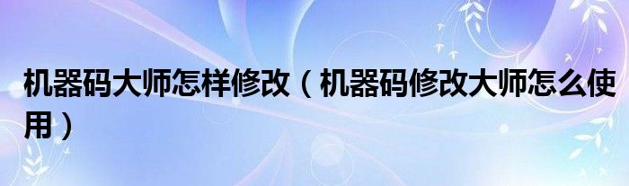 机器码大师怎样修改(机器码修改大师怎么使用)