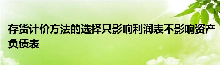 最佳答案关于存货计价方法的选择只影响利润表不影响资产负债表这个很多人还不知道,今天菲菲来为大家解答以上的问题,现在让我们一起来看看吧!1、存货新准则规定:“企业应当采用先进先出法、加权平均法或者个别计价法确定发出存货的实际成本。2、” 先进先出法 先进先出法是以先入库的存货先发出这样一种...