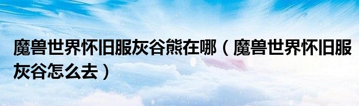 魔兽世界怀旧服灰谷熊在哪(魔兽世界怀旧服灰谷怎么去)