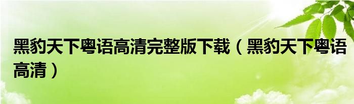 黑豹天下粤语高清完整版下载(黑豹天下粤语高清)