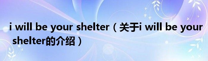 大家好,今天小乐来为大家解答以上的问题。i will be your shelter,关于i will be your shelter的介绍很多人还不知道,现在让我们一起来看看吧!
