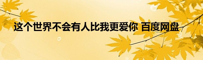 关于这个世界不会有人比我更爱你 百度网盘这个很多人还不知道,今天菲菲来为大家解答以上的问题,现在让我们一起来看看吧!