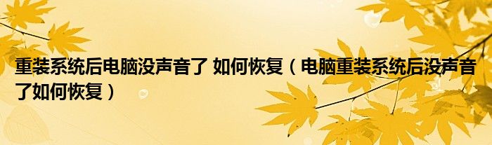 关于重装系统后电脑没声音了 如何恢复,电脑重装系统后没声音了如何恢复这个很多人还不知道,今天菲菲来为大家解答以上的问题,现在让我们一起来看看吧!