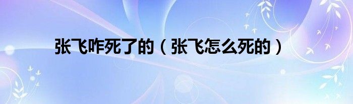 关于张飞咋死了的,张飞怎么死的这个很多人还不知道,今天菲菲来为大家解答以上的问题,现在让我们一起来看看吧!