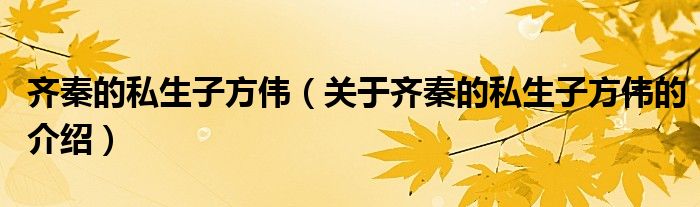 齐秦的私生子方伟(关于齐秦的私生子方伟的介绍)