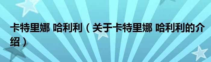 大家好,今天小乐来为大家解答以上的问题。卡特里娜 哈利利,关于卡特里娜 哈利利的介绍很多人还不知道,现在让我们一起来看看吧!