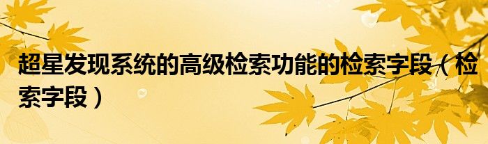 关于超星发现系统的高级检索功能的检索字段,检索字段这个很多人还不知道,今天菲菲来为大家解答以上的问题,现在让我们一起来看看吧!