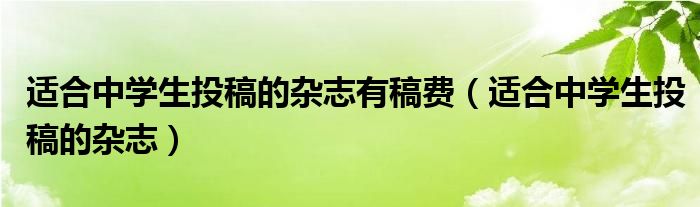 关于适合中学生投稿的杂志有稿费,适合中学生投稿的杂志这个很多人还不知道,今天菲菲来为大家解答以上的问题,现在让我们一起来看看吧!