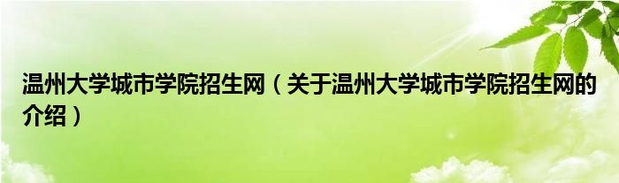 温州大学城市学院招生网(关于温州大学城市学院招生网的介绍)