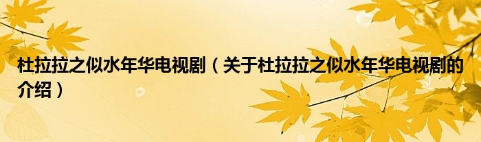大家好,今天小乐来为大家解答以上的问题。杜拉拉之似水年华电视剧,关于杜拉拉之似水年华电视剧的介绍很多人还不知道,现在让我们一起来看看吧!