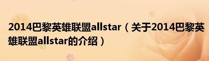 2014巴黎英雄联盟allstar(关于2014巴黎英雄联盟allstar的介绍)