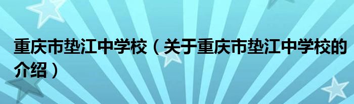 1、重庆市垫江实验中学校(Chongqing Dianjiang Experimental Middle School),位于重庆市垫江县,是重庆市重点中学。