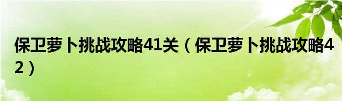 大家好,来宝来为大家解答以下问题,保卫萝卜挑战攻略41关,保卫萝卜挑战攻略42很多人还不知道,今天让我们一起来看看吧!