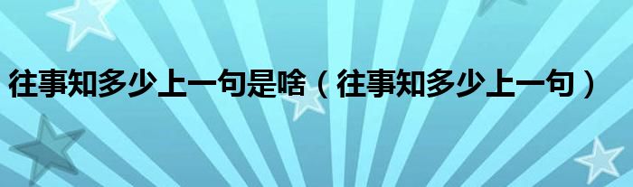 大家好,小晋来为大家解答以下问题,关于往事知多少上一句是啥,往事知多少上一句很多人还不知道,今天让我们一起来看看吧!