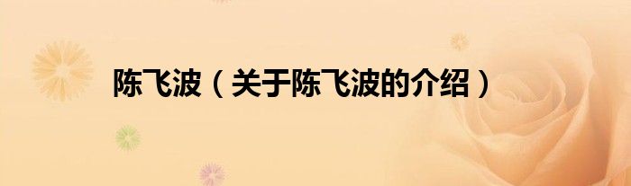 大家好,小都来为大家解答以上的问题。陈飞波,关于陈飞波的介绍很多人还不知道,现在让我们一起来看看吧!