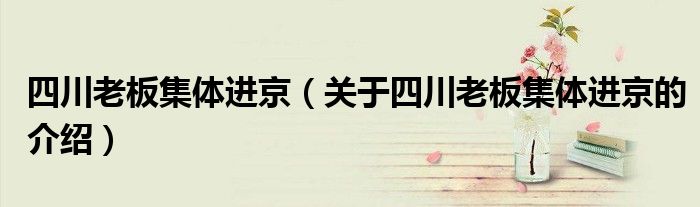 大家好,小都来为大家解答以上的问题。四川老板集体进京,关于四川老板集体进京的介绍很多人还不知道,现在让我们一起来看看吧!