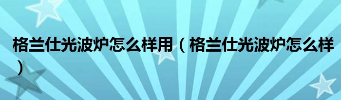 格兰仕光波炉怎么样用(格兰仕光波炉怎么样)