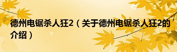 大家好,小都来为大家解答以上的问题。德州电锯杀人狂2,关于德州电锯杀人狂2的介绍很多人还不知道,现在让我们一起来看看吧!