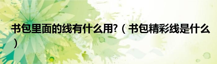 大家好,小晋来为大家解答以下问题,关于书包里面的线有什么用?,书包精彩线是什么很多人还不知道,今天让我们一起来看看吧!