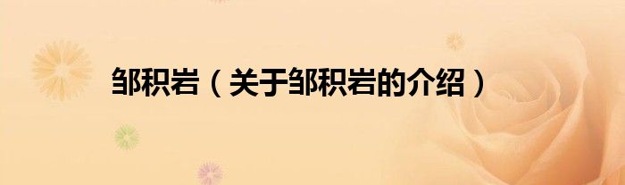 大家好,小都来为大家解答以上的问题。邹积岩,关于邹积岩的介绍很多人还不知道,现在让我们一起来看看吧!