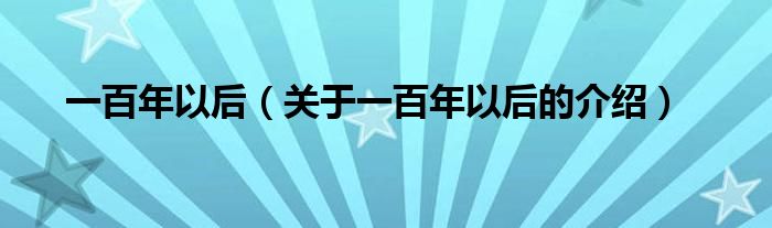 一百年以后(关于一百年以后的介绍)