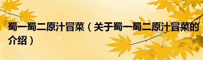 大家好,小都来为大家解答以上的问题。蜀一蜀二原汁冒菜,关于蜀一蜀二原汁冒菜的介绍很多人还不知道,现在让我们一起来看看吧!