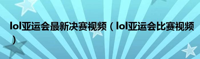 大家好,雨雨来为大家解答以上问题,lol亚运会最新决赛视频,lol亚运会比赛视频很多人还不知道,现在让我们一起来看看吧!