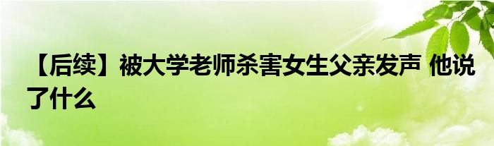 大家好.我是互联百科的羽儿,现在为大家解决以上【后续】被大学老师杀害女生父亲发声 他说了什么的问题.