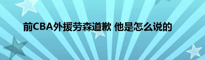 大家好.我是互联百科的羽儿,现在为大家解决以上前CBA外援劳森道歉 他是怎么说的的问题.
