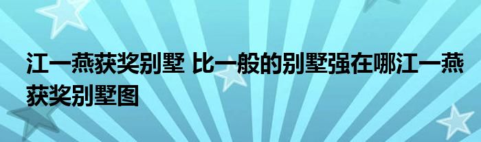 大家好.我是互联百科的羽儿,现在为大家解决以上江一燕获奖别墅 比一般的别墅强在哪江一燕获奖别墅图的问题.