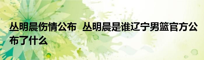大家好.我是互联百科的羽儿,现在为大家解决以上丛明晨伤情公布 丛明晨是谁辽宁男篮官方公布了什么的问题.