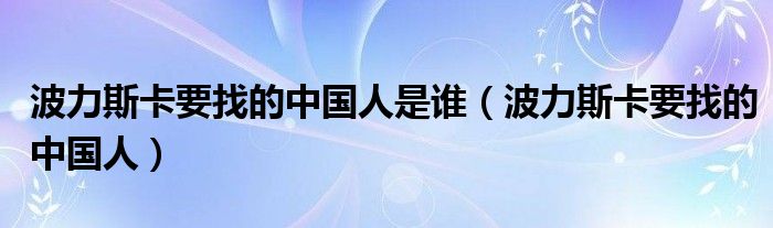 关于波力斯卡要找的中国人是谁,波力斯卡要找的中国人这个很多人还不知道,今天菲菲来为大家解答以上的问题,现在让我们一起来看看吧!