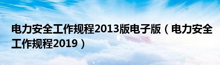 电力安全工作规程2013版电子版(电力安全工作规程2019)