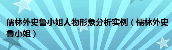 关于儒林外史鲁小姐人物形象分析实例,儒林外史鲁小姐这个很多人还不知道,今天菲菲来为大家解答以上的问题,现在让我们一起来看看吧!