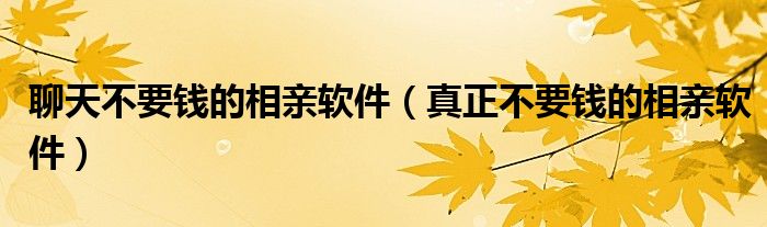 聊天不要钱的相亲软件(真正不要钱的相亲软件)