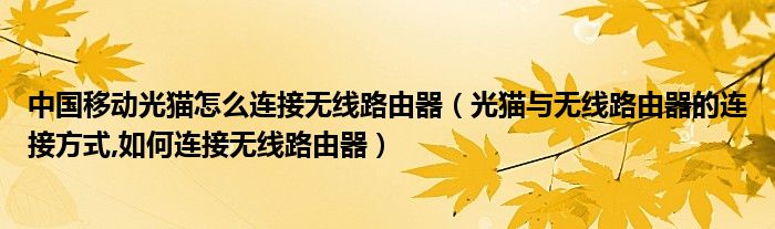 小鱼来为大家解答以下问题,中国移动光猫怎么连接无线路由器,光猫与无线路由器的连接方式,如何连接无线路由器很多人还不知道,现在让我们一起来看看吧!