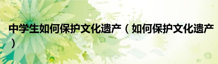 关于中学生如何保护文化遗产,如何保护文化遗产这个很多人还不知道,今天菲菲来为大家解答以上的问题,现在让我们一起来看看吧!