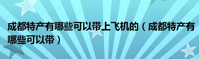 关于成都特产有哪些可以带上飞机的,成都特产有哪些可以带这个很多人还不知道,今天菲菲来为大家解答以上的问题,现在让我们一起来看看吧!