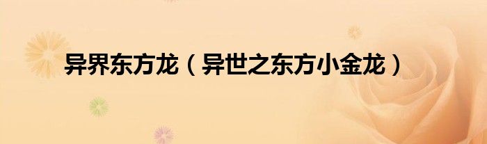 关于异界东方龙,异世之东方小金龙这个很多人还不知道,今天菲菲来为大家解答以上的问题,现在让我们一起来看看吧!