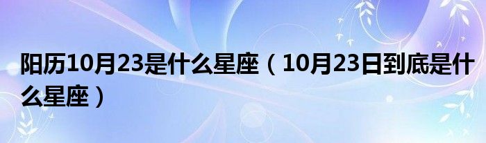 关于阳历10月23是什么星座,10月23日到底是什么星座这个很多人还不知道,今天菲菲来为大家解答以上的问题,现在让我们一起来看看吧!