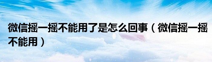 大家好,小小来为大家解答以下问题,微信摇一摇不能用了是怎么回事,微信摇一摇不能用很多朋友还不知道,现在让我们一起来看看吧!